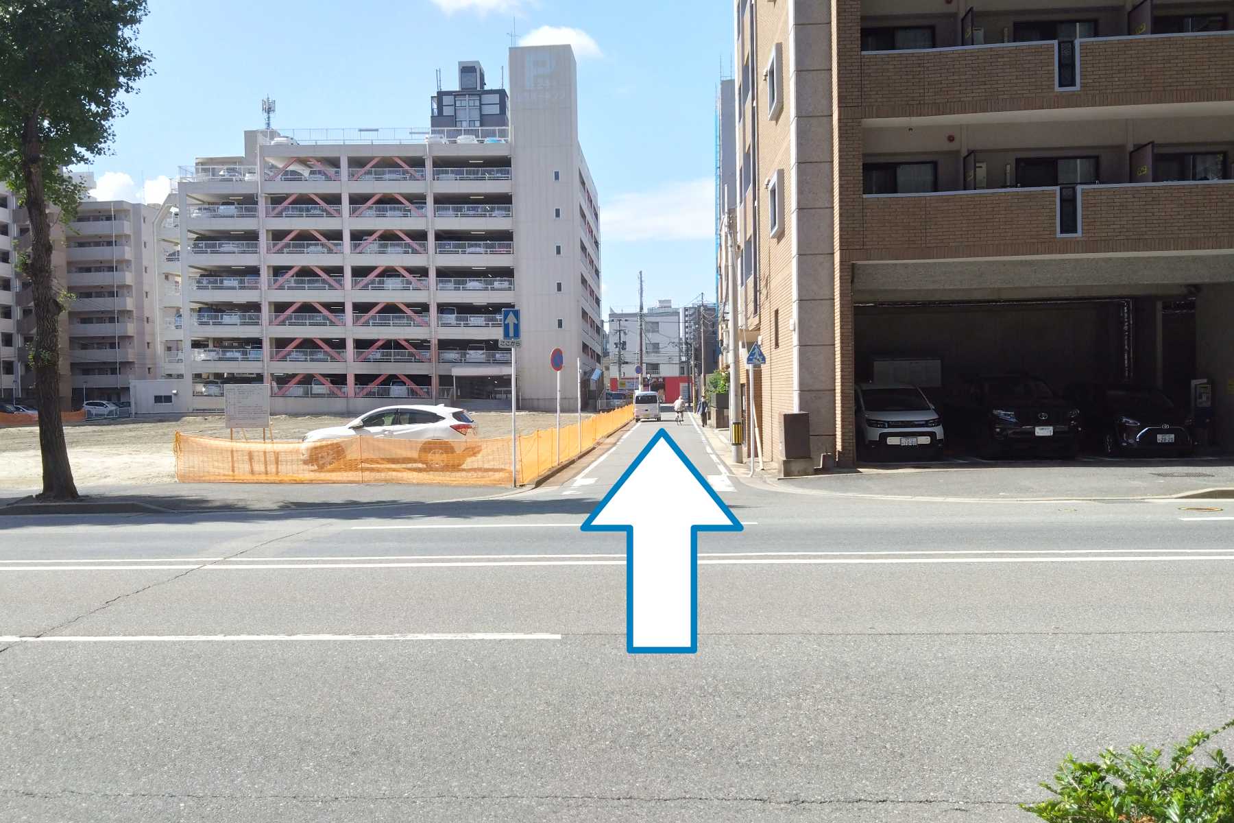 マンションと旧パチンコキング跡地の三差路を西へ進みます。